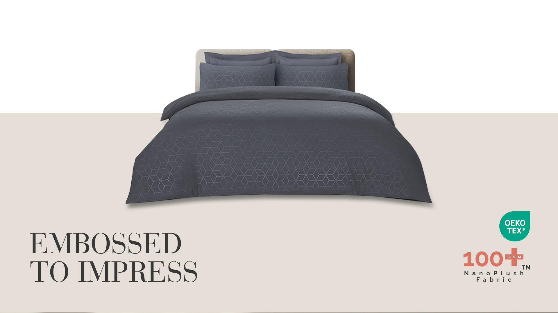 Bring contemporary charm to your bedroom with an Embossed Geometric Duvet Cover Set in navy. The intricate patterns in a rich hue provide a balanced and bold aesthetic, creating a focal point in your bedroom. This set is designed for a peaceful sleep, with LYMA’s advanced NanoPlush™ yarn and SereneWeave™ technology, offering a sumptuously velvety feel. Its breathable fabric regulates temperature, keeping you cool in summer and warm in winter. Engineered for durability, it is shrink-resistant and maintains its luxurious appeal over time.