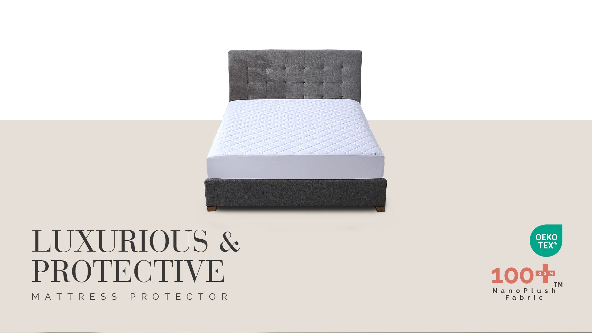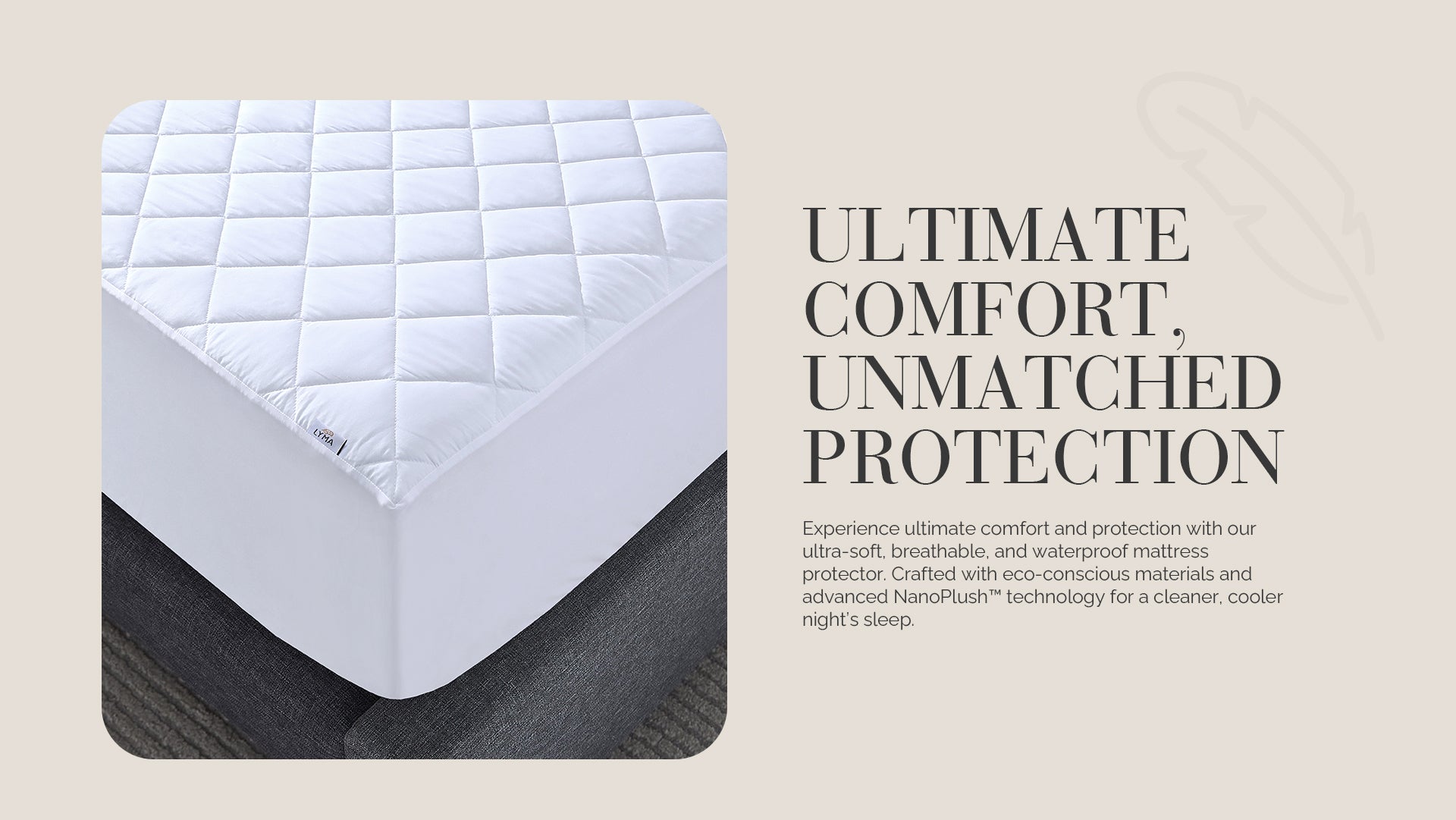 Protect your mattress with our quilted mattress protector, designed for luxury, comfort, and durability. Our quilted mattress protector uses NanoPlush™ and SereneWeave™ technology to enhance the softness and breathability of the fabric. NanoPlush™ offers a smooth, rich touch, while SereneWeave™ helps increase airflow for extra breathability. Made from premium materials, this protector offers a soft microfiber surface with 100gsm polyester wadding for extra cushioning. Transform your bedding into a healthier, more comfortable sleep surface with this sustainable and long-lasting mattress protector.